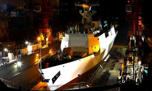 解放軍數艘新型戰艦武器細節曝光中國第20艘054A護衛艦已于7月下旬在夜間下水,從國內媒體披露的照片來看,這艘戰艦雖然還沒有涂刷海軍舷號,但是雷達、火炮等設施齊全,在燈光的照射下,顯得霸氣十足[詳細]