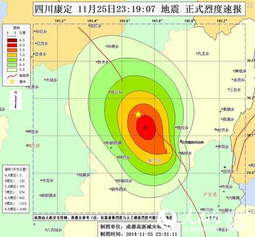 人民網成都11月26日電 (熊文瑤)記者剛剛從成都高新減災研究所了解到,11月25日23時19分在四川省甘孜藏族自治州康定縣(北緯30.2度,東經101.7度)發生5.8級地震,此次地震系康定6.3級地震的余震。 四川省地震預警重點實驗室主任、成都高新減災研究所所長王暾告訴記者,“25日…[詳細]