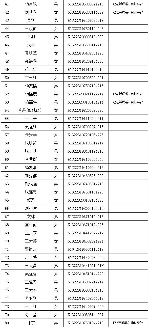 最新:四川茂縣山體垮塌災害失聯及遇難人員名單