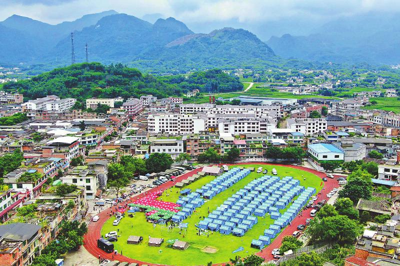 圖為設在長寧縣雙河中學運動場上的臨時安置點。記者 楊樹 攝…[詳細]