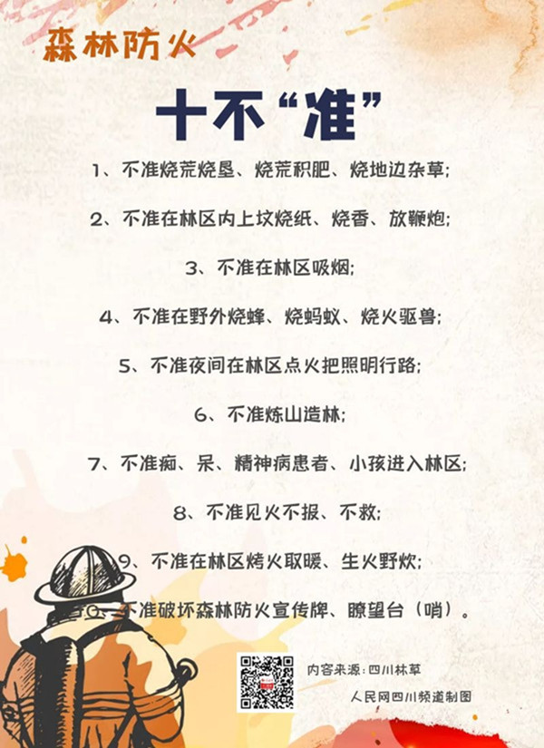四川省發布高森林火險紅色預警 進入林區嚴格遵守森林防火“十不準”!