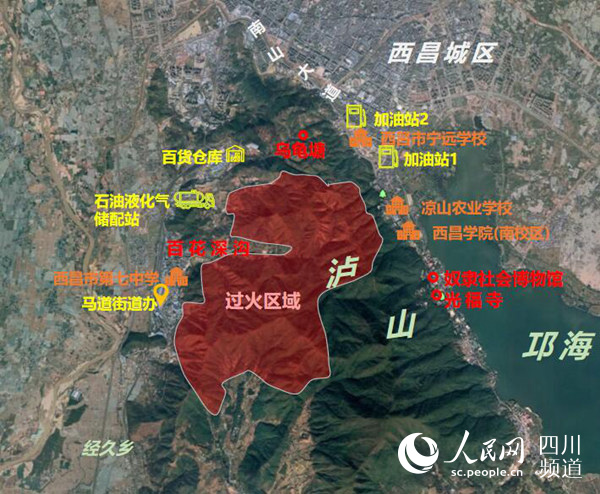 “瀘山著火了!”3月30日15時51分,四川省涼山彝族自治州西昌市經久鄉馬鞍村突發森林火災。由于當地風勢較大,火勢很快蔓延至瀘山,危及西昌城區。 四川西昌市經久鄉森林火災發生地周邊重點單位位置圖。西昌市人民政府新聞辦供圖 災害發生后,中共中央總書記、國家主席、中央軍委主席習近平作出重要…[詳細]
