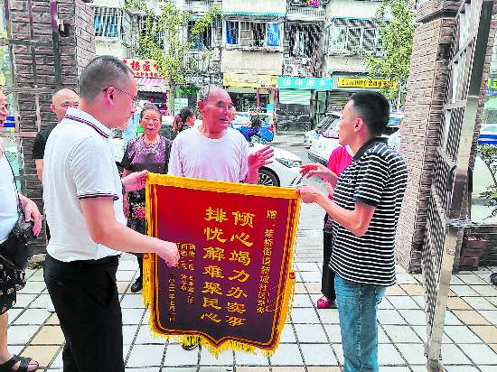 6月30日,來自成都市武侯區簇橋街道新城社區長壽苑二區、芳華苑、西街一二三區的業主代表捧著寫有“傾心竭力辦實事、排憂解難聚民心”字樣的錦旗來到新城社區!