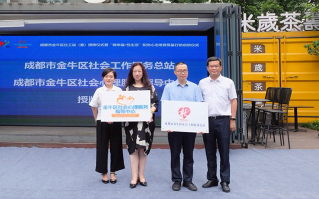 近日,金牛區社工站(室)授牌儀式暨“微幸?!偵睢标柟庑膽B培育筑基行動啟動儀式在成都市金牛區舉行。金牛區為區社工總站、區社會心理服務指導中心、13個街道社工站和社會心理服務工作站進行了授牌。