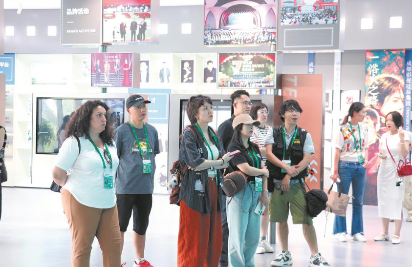 媒體記者在影視會客廳參觀。 12日,第二屆金熊貓獎在成都拉開帷幕。