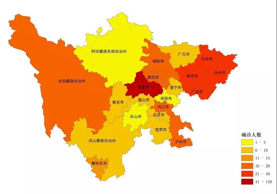 四川省新型冠狀病毒肺炎確診人數分布圖