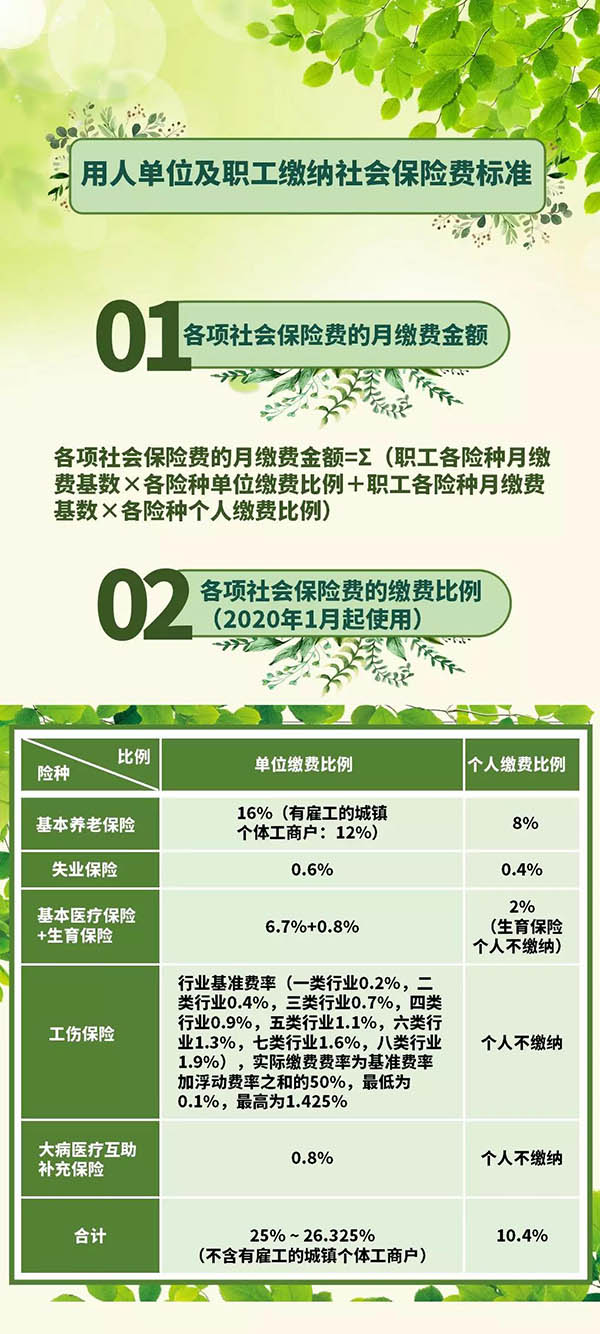 一是2020年企業職工基本養老保險的單位費率繼續執行16%;二是在失業和工傷保險階段性降低費率政策執行至2020年4月30日到期后,2020年5月1日至2021年4月30日,繼續階段性降低失業和工傷保險費率,其中用人單位和個人繳納失業保險費費率分別按0.6%、0.4%執行;工傷保險費率在現行基準費率和浮動費率政策規定基礎上下調50%。三是在下一個工傷浮動費率調整周期(2020年4月1日至2021年3月31日),按照工傷保險浮動費率政策應當調整上浮的暫不上浮。