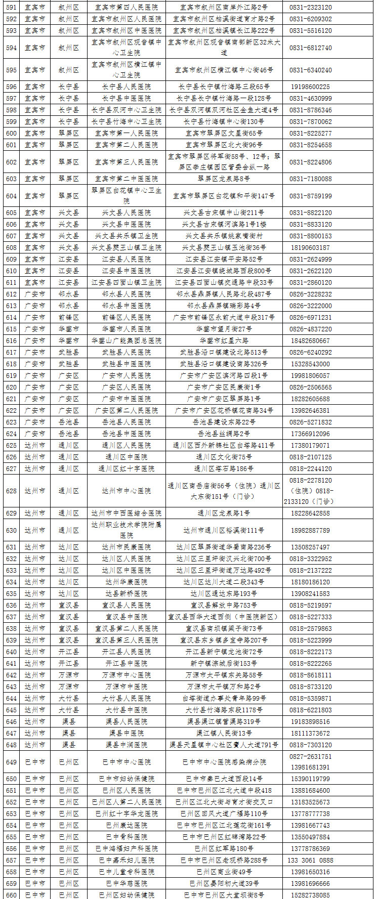 人民網成都2月28日電 根據新冠肺炎疫情形勢和醫療救治工作需要,四川省重新調整了發熱門診布局。為方便人民群眾就診就醫,2月27日,四川省衛健委公布了1051家發熱門診信息。具體如下: