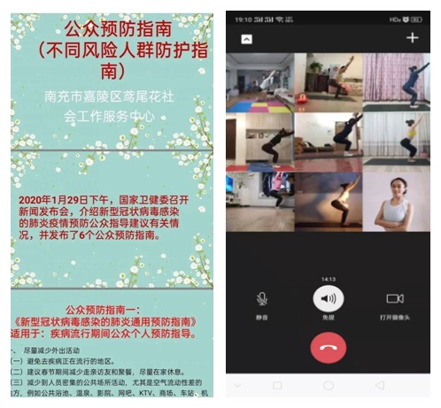 巾幗志愿者、“鳶尾花”社會服務中心負責人任雯發揮所長,整合資源,多方聯系,邀請到了武術、美術、瑜伽、健康管理等方面的老師加入巾幗志愿者隊伍,在線免費教授體育鍛煉、科學飲食、工筆繪畫、瑜伽練習等,既幫助大家成功轉移焦慮,又帶給大家身心愉悅。巾幗志愿者、樂器老師李希雅不僅在線教玩空靈鼓,還協同有醫護專業技術的志愿者,制作了公眾預防“新冠病毒”PPT課件供大家學習。