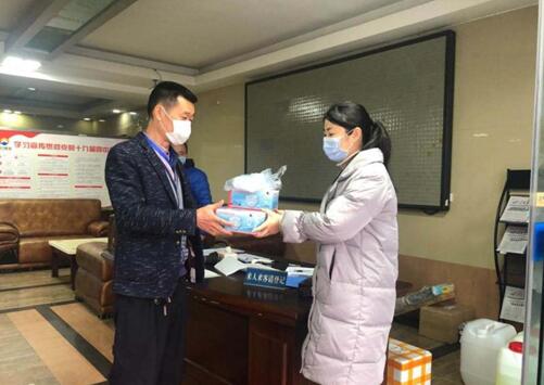 張靜為基層人員發放防疫物資