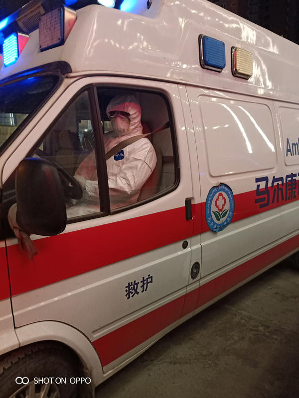 我和吳桂勇穿上防護服,開上救護車出發了。凌晨4點的馬爾康寂靜而寒冷,我和吳桂勇都沒有說話。我們在老衛健局樓下接到小劉,在疾控中心門口接到小馬哥……每接到一個人都看見他們站在路邊,在寒風中瑟瑟發抖。他們的樣子讓我心里特別不是滋味。誰愿意這樣的事情發生?將他們一一接到醫院,安排在了精神科五樓。醫院的地熱與明亮的燈光與街邊的寒冷與昏暗形成了強烈的對比,雖然他們都要被隔離了,至少是溫暖而明亮的。