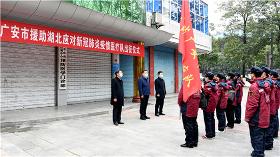 援助湖北的廣安醫療隊出征,市委書記李建勤為他們“壯行”。曹文芳 攝