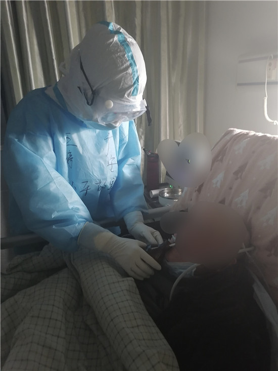 其實這對做護理工作的王婷來說,并不是難事。但因為要穿上厚重的防護服,戴上護目鏡和手套,一出汗,護目鏡起霧,就會影響視力,而手套隔著皮膚,感知度也沒有平時準確,但好在初戰告捷,阿姨免受了再次扎針的痛,阿姨也鼓勵她,能干,工作認真細致。