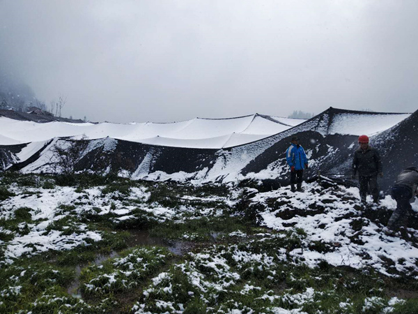 羊肚菌剛剛長出地面,大棚被雪壓垮了!耙菈簲嗔司蜎]有收成!彼娏,眼淚一下涌滿眼眶:我的羊肚菌啦!他用手去刨大棚上的積雪,砭骨頭,遭不住,改用竹桿來趕。又請了10來個小工幫忙,把大棚上壓塌的遮蔭布提起來,把雪抖落下去,再用鐵絲撐起來。天落著雪,全身濕完。