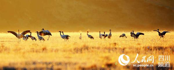 飛禽在草原上覓食。阿壩州委宣傳部供圖