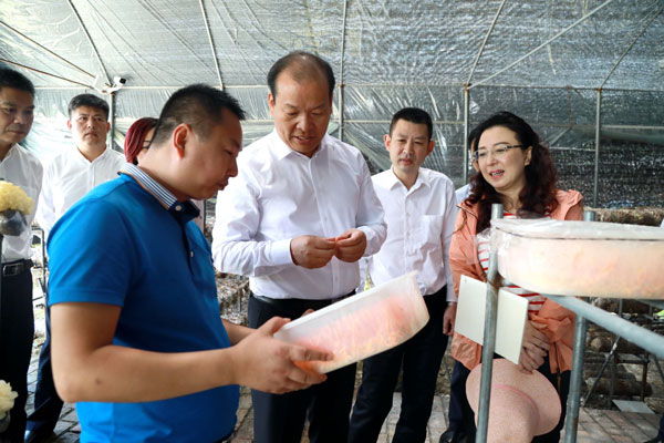 金口河區委書記張建紅(右一)陪同浦江黨政代表團在金口河調研食用菌種植項目。樂山金口河區委宣傳部供圖