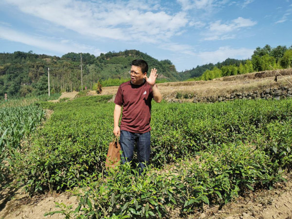 王文彬在茶葉種植基地了解采摘情況。沙馬石古攝