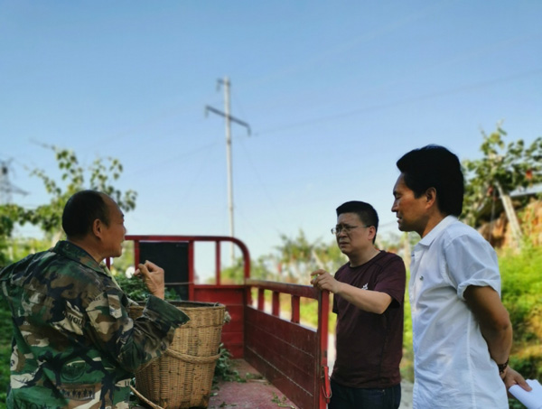 王文彬(中)在3組獼猴桃種植基地傾聽群眾意見。沙馬石古攝