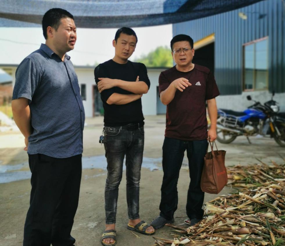 王文彬(右)在牛尾筍加工廠協商收購生產銷售事宜。沙馬石古攝