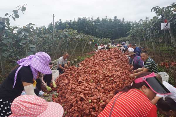 村民們喜收獼猴桃。沙馬石古攝