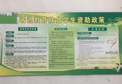 (楊河鄉中心小學展示的教育扶貧學生資助政策)