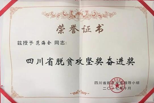 接著,在國慶節后,又在四川省脫貧攻堅領導小組中獲“四川省脫貧攻堅獎奮進獎”。