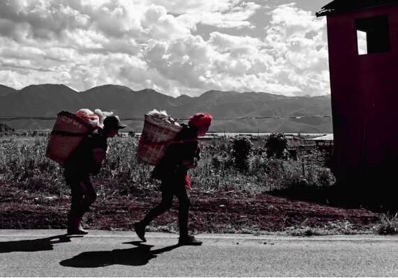 瀘沽湖畔的勤勞背夫。作者供圖