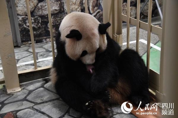 旅日大熊貓“良浜”順利產崽。日本和歌山白浜野生動物園供圖