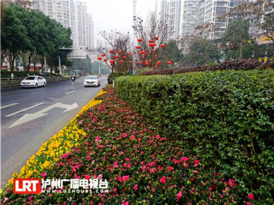 從1月中旬開始,城區主干道,如蜀瀘大道、酒城大道、龍泉橋、大梯步等重要街道節點也布置鮮花,品種有一品紅、西洋鵑、三色堇等色彩絢麗的鮮花,江陽區及龍馬潭區共計擺放了100萬盆花卉。