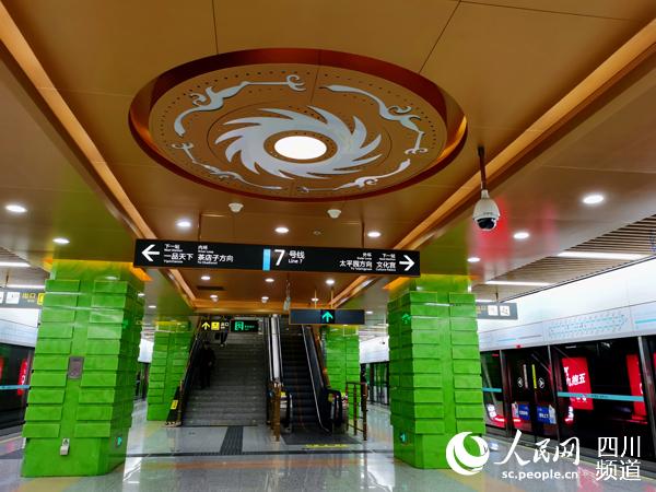 成都地鐵七號線金沙博物館站內部裝飾風格。人民網 劉海天攝