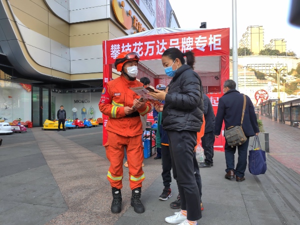 吃過早飯,消防員郭鵬就連忙帶領班級人員調試好滅火裝備,準備好防火宣傳用品。他們今天的任務是前往攀枝花市萬達廣場開展防火宣傳。