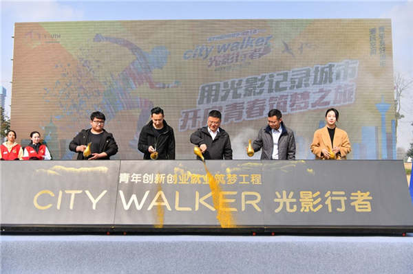隨后,共青團成都市委、市公園城市建設管理局相關同志和三位分享青年代表共同啟動了city walker光影行者筑夢之旅,將帶領青年更進一步走進成都,用光影記錄城市之美,感受成都“銳意創新、寬容失敗”的城市氣度和“樂觀包容、友善公益”的城市溫度。除了青年代表分享“打卡成都”經歷和啟動city walker光影行者筑夢之旅外,主題活動還設置了“奔跑吧,青年”撕名牌互動游戲,讓青年在運動中感受城市脈動,釋放青春活力。