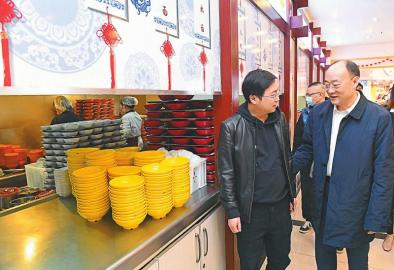 2月25日,住川全國政協委員、尤尼泰(四川)稅務師事務所有限公司總裁藍逢輝(右)到成都龍抄手春熙路總店,了解企業2020年抗疫、復工復產、生產經營、享受扶持政策等情況。同時,傾聽基層企業需求和建議。(四川日報全媒體記者李向雨攝)