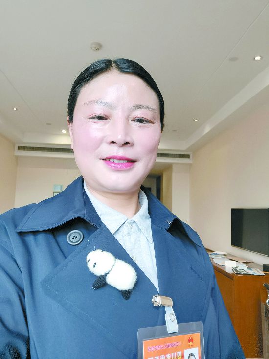 “這是村民手工制作的胸花,也是見證我們村積極轉型的產品之一!比珖舜蟠、岷江村黨委書記陶勛花戴著“熊貓”胸花前往北京參加兩會,她說,村民都很期待看到自己的產品從鄉村走向首都,也希望她在北京多拍幾張戴著胸花的照片發回來。