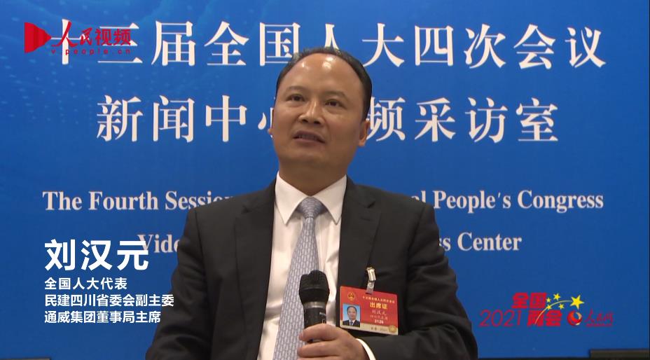 全國人大代表、通威集團董事局主席劉漢元接受采訪。人民視頻截圖