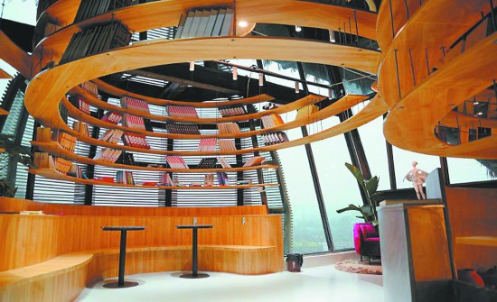 在彭州市葛仙山鎮熙玉村的千畝梨園內,雪白的梨花環繞著一棟造型別致的建筑。木質斜坡屋頂下是大面積玻璃落地窗的三層小樓,遠遠看去像一個鳥巢安放在梨園中,川西民居建筑元素與現代風格完美融合。