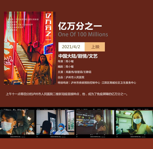 人民網成都4月3日電 (王波)為了打消老百姓對疫苗接種的顧慮,加快推進疫苗全民接種計劃,近日,四川省衛健委宣傳教育中心和瀘州市人民醫院制作了一系列號召大家接種新冠疫苗的宣傳視頻。其中,一個名為《億萬分之一》的網絡短視頻,因模仿電影《重慶森林》的拍攝手法,詼諧、幽默,迅速在網上躥紅,并獲得不少網友點贊。