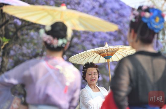 美圖!西昌:當紫色藍花楹與各色漢服相遇
