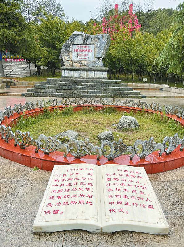 冕寧縣彝海鎮海拔2200多米處的彝海是高山淡水湖,彝語稱“烏勒蘇泊”,意為“海子”。在彝海西北方向有一塊由低矮圍欄圈起,不到10平方米的草坪,上面坐落著三塊青石。據彝海結盟紀念館管理員沙馬依姑介紹,劉伯承、小葉丹等人當年正是坐在這幾塊石頭上談話的。