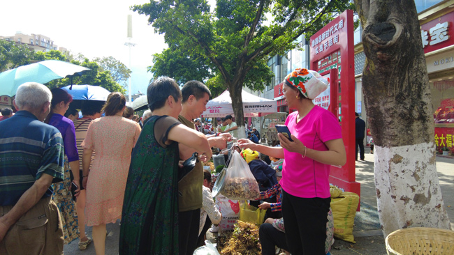 購買草藥的市民邊走邊看,遇到自己需要的藥材,便駐足觀望,與賣藥人討價還價。整個藥市充滿了活力和生機。