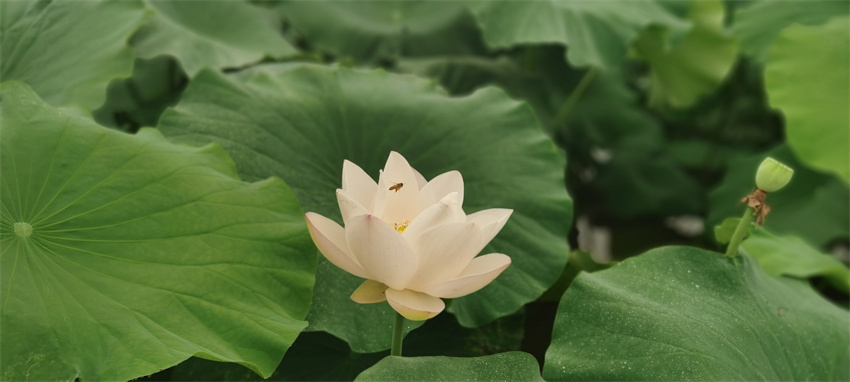 蜜蜂徜徉蓮葉間。簡陽市委宣傳部供圖