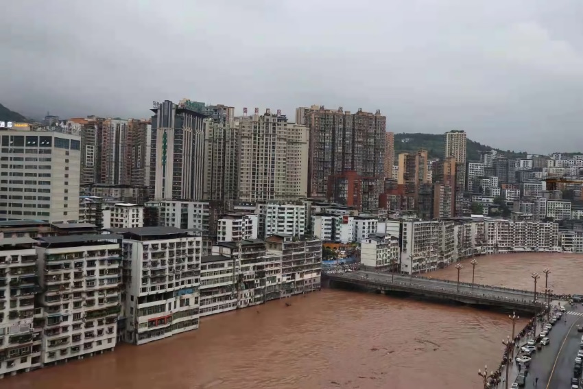 巴中市通江縣河水水位持續上漲。巴中市委宣傳部供圖