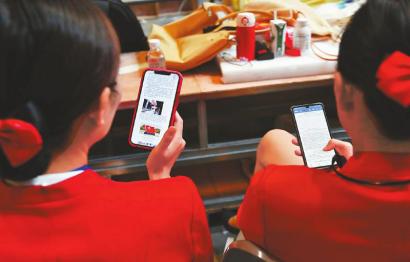 7月8日,在后臺休息區,講解員拿出手機背誦講解詞,力求做到講解過程中一字不錯。