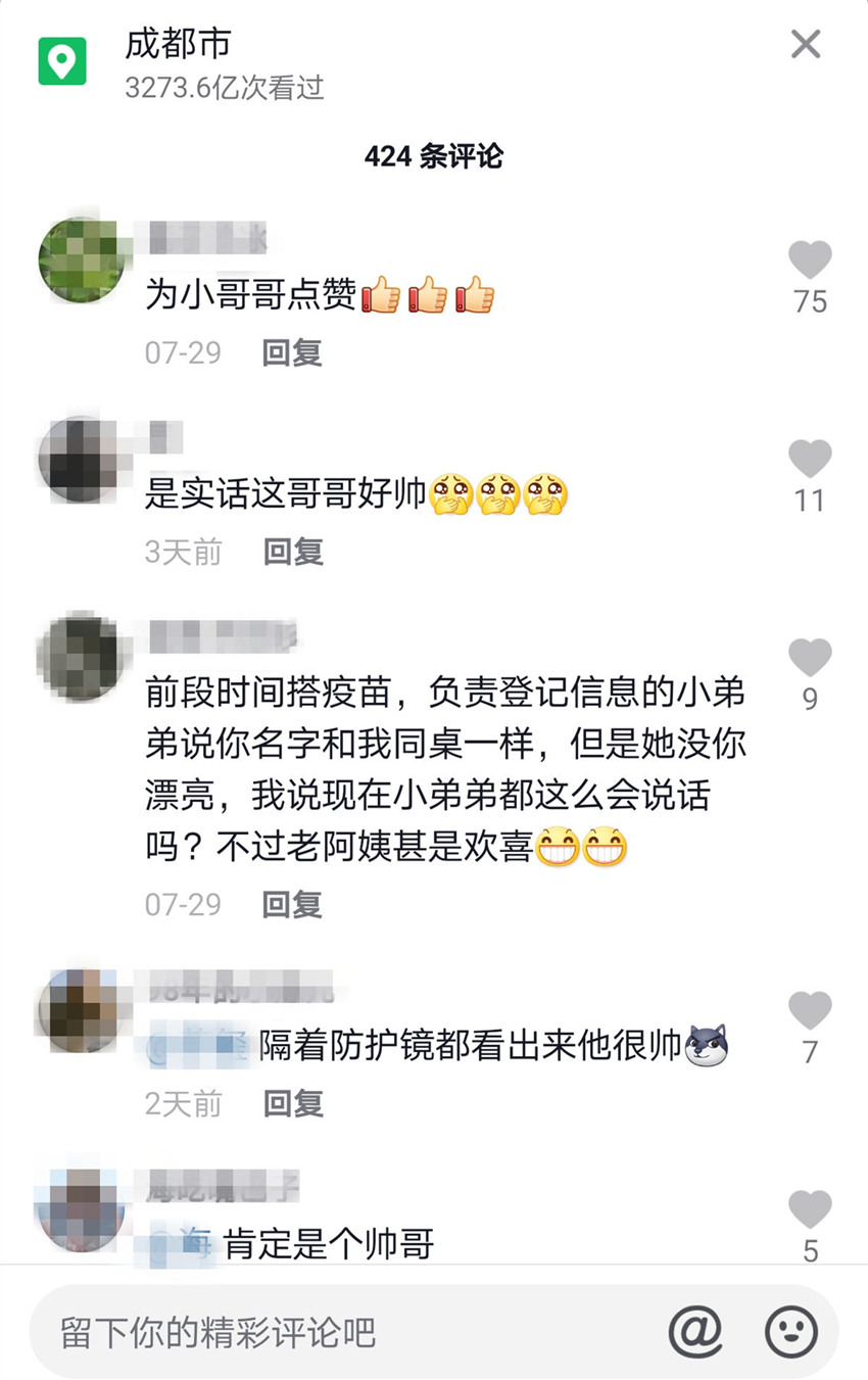 經了解,視頻中這位高個子醫生名叫王浩,1997年出生,是來自成都市青羊區蘇坡社區衛生服務中心的一名家庭醫生。因為身高一米九,坐著采樣不方便看清楚取樣部位,尤其是遇到小朋友或者老人更是不方便。為了不讓前來進行核酸采樣的市民“遷就”他的身高,影響采樣速度,于是他索性全程“站立式”服務,俯身操作更方便,也意外成為了采集點不一樣的“風景”。
