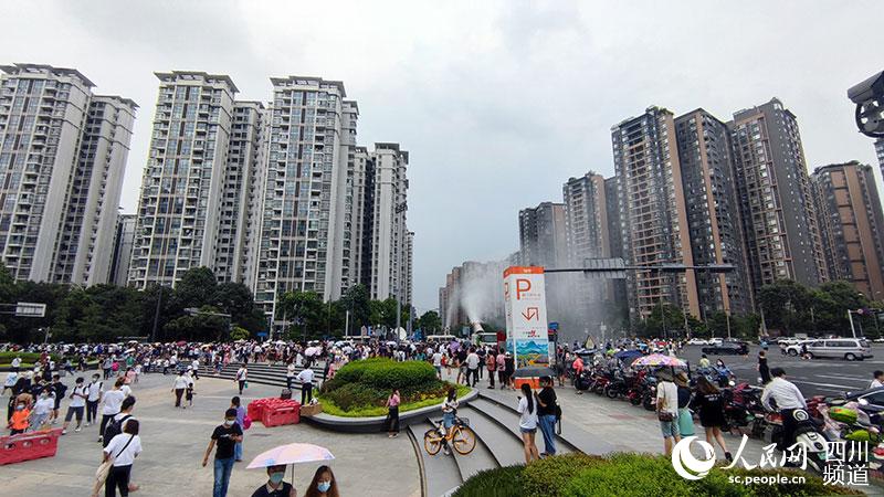 8月11日15時,成都天府二街與劍南大道路口拆除圍欄,解除管控,不少市民走上街頭。羅毅然攝