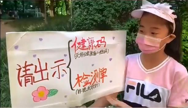 在優品道小區第二輪核酸檢測現場,幾塊妙趣橫生的提示牌格外顯眼!知道媽媽要去做志愿者,小區9歲小朋友希;税胩鞎r間,做成了一塊別樣的核酸檢測提示牌。希希說,要保護媽媽嗓子,讓指示牌代替她發聲,也讓大家少說話,避免更多接觸。