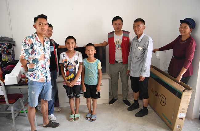 電視送到家中那天早上,且沙次爾在自己家門口踱步等待。在深山里窮苦了一輩子,這臺電視機是全家購買的第一個大件,一家人都異常興奮和期待。且沙次爾的兒子且沙史日正在上初中,看到家里的電視,他說,“可以通過電視了解很多東西,很開心!