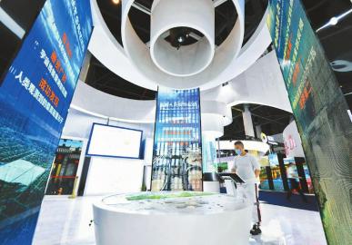 四川展館內的大型冰屏,減少了結構部件對視線的阻擋,最大限度提高視頻播放的透視效果。