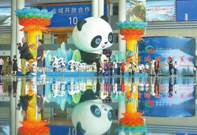 元氣滿滿的自貢彩燈展臺成了西博會參會客商的打卡地。