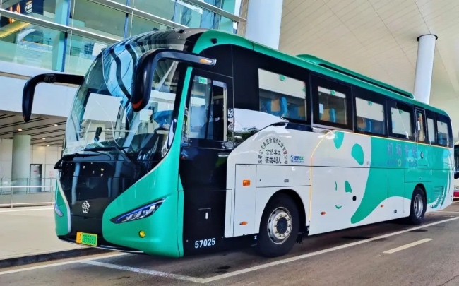 今年公交出行宣傳周期間,成都在多輛純電動新能源公交車上進行了綠色出行主題宣傳。圖為在天府機場線和部分社區定制線路上運行的新能源車輛——臉譜“二哥”。成都市交通運輸局供圖